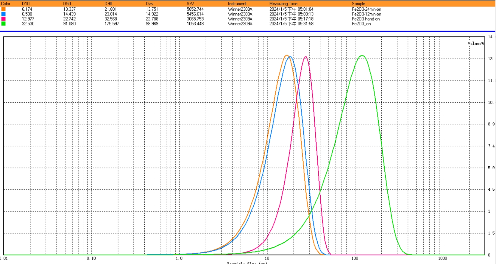 最終以Winner 2309A粒徑分析儀進行分析,得出以下結論: