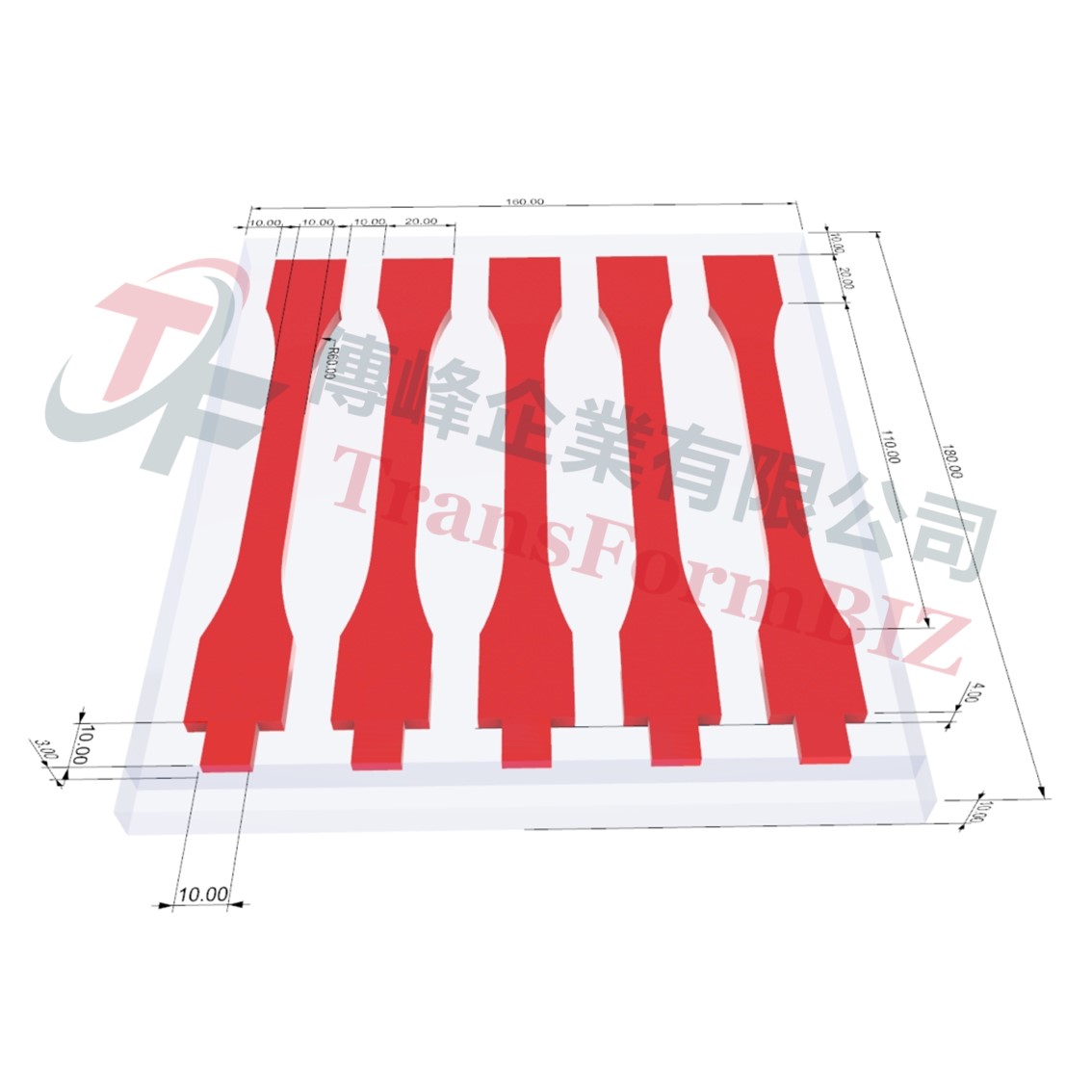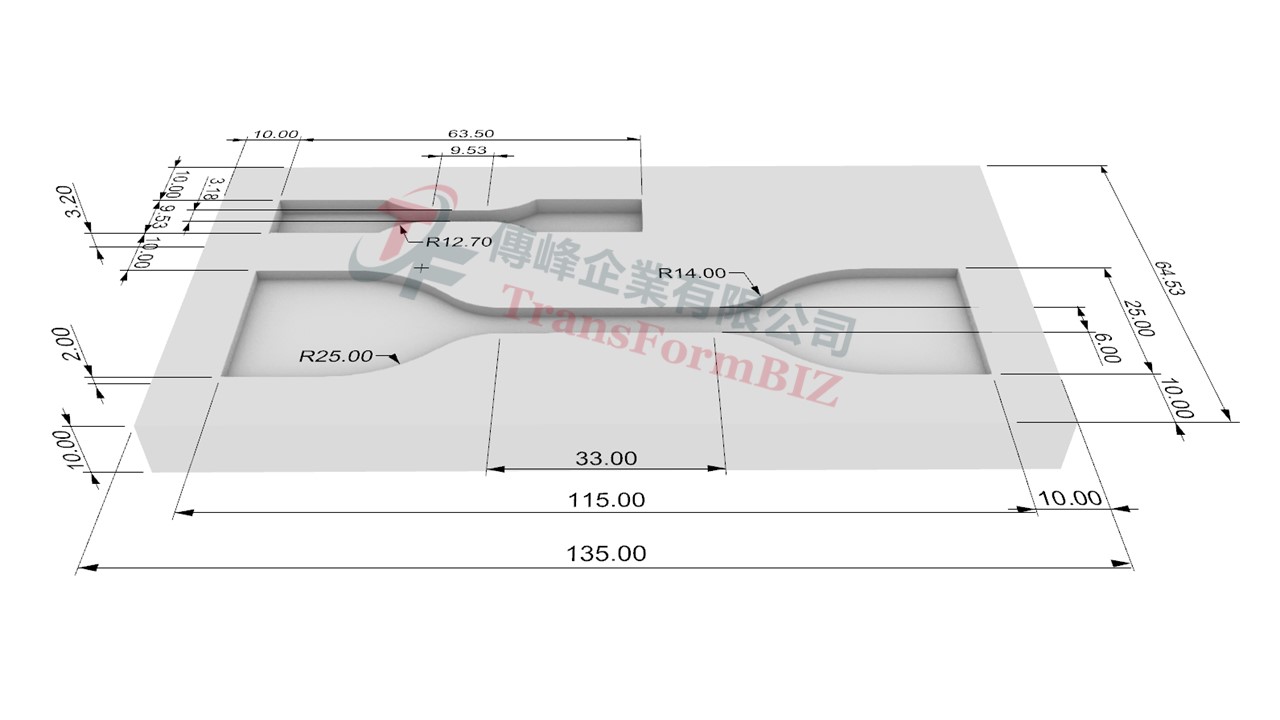 PTFE模具擁有卓越的高低溫耐性和化學穩定性,同時具有優秀的電絕緣性、防黏性、耐候性、阻燃性和潤滑性。這些模具不僅能夠輕鬆地將樣品固化,並在固化後輕鬆脫模,方便進行後續的拉伸實驗。模具的製作狗骨頭、啞鈴型、長條狀可符合ASTM、ISO、JIS、DIN等標準,同時也支援客製化尺寸以滿足各種需求。