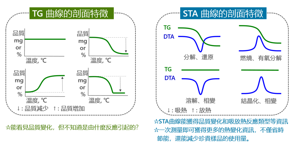 STA (TGA-DTA / TGA-DSC) 提供更多元資訊協助使用者判斷樣品